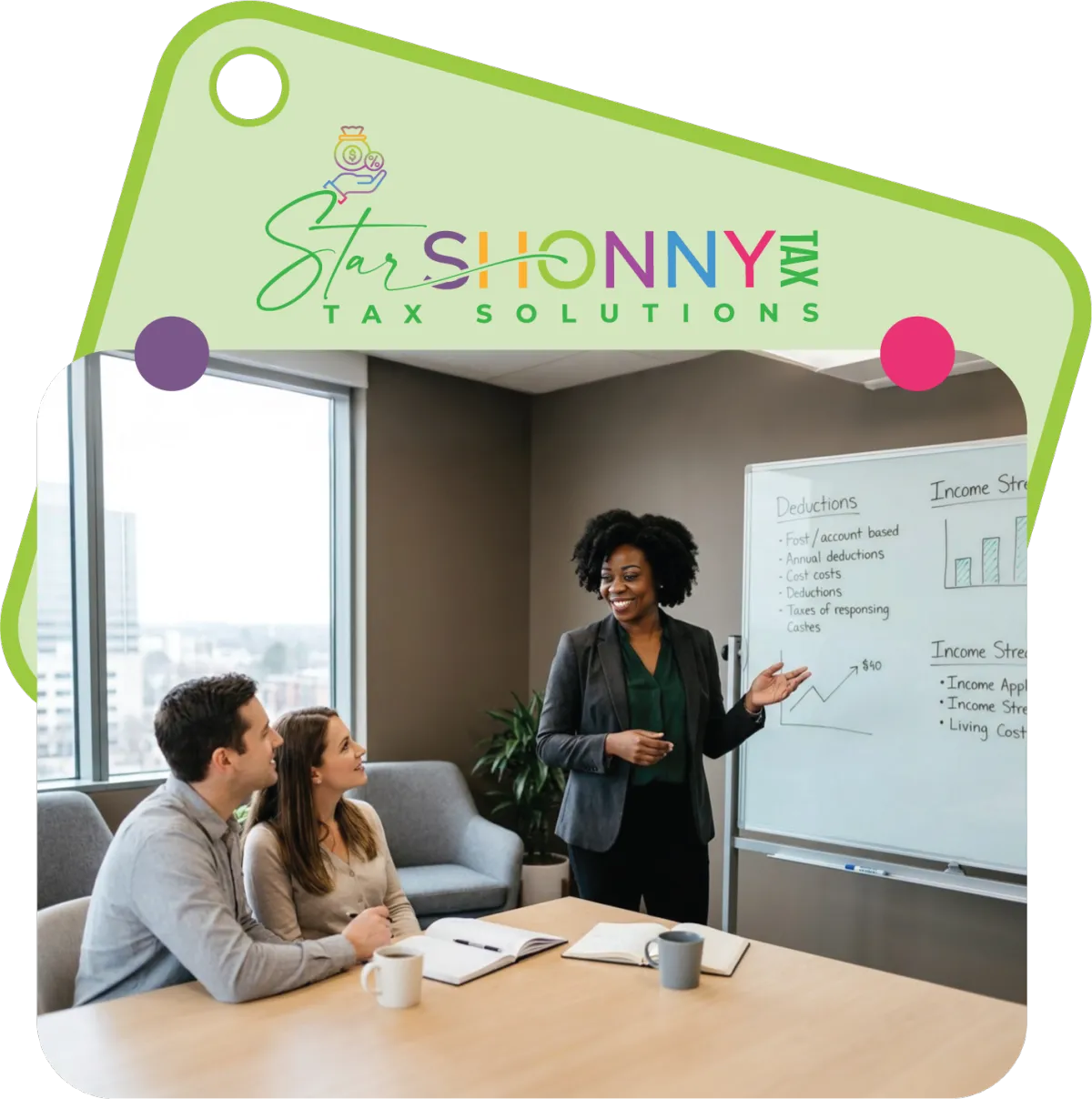 Star Shonny Tax calculations are 100% accurate so your taxes will be done right, guaranteed, or we'll pay you any IRS penalties.